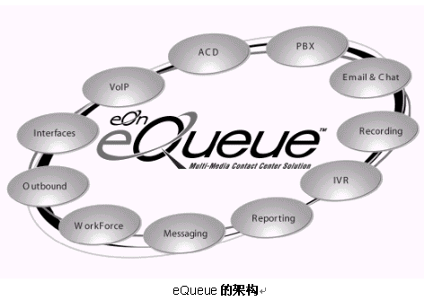 正是基于這樣一種能夠最終實現(xiàn)雙贏的合作模式,美國益昂通訊公司(eOn communications)可以準確地把握聯(lián)絡(luò)中心市場未來技術(shù)發(fā)展的方向,開發(fā)出了適應(yīng)未來技術(shù)發(fā)展要求的、全面的聯(lián)絡(luò)中心解決方案───eQueue多媒體聯(lián)絡(luò)中心解決方案。