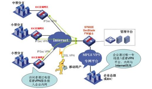 企業(yè)專網(wǎng)作為企業(yè)內(nèi)部信息分享的重要通道,已經(jīng)成為提升工作效率的關(guān)鍵。但由于企業(yè)專網(wǎng)前期投資巨大、建設(shè)速度遠(yuǎn)落后于企業(yè)發(fā)展速度,因此以租賃形式為主的VPN業(yè)務(wù)漸漸興起。上海電信作為國內(nèi)領(lǐng)先的運(yùn)營商,與業(yè)界領(lǐng)先的IToIP解決方案提供商H3C的合作,推出的“E通VPN”品牌業(yè)務(wù),提供“網(wǎng)絡(luò)+安全+服務(wù)+Qos”綜合信息服務(wù),受到了企業(yè)用戶的廣泛歡迎。