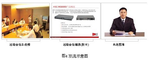 在雙視頻流傳輸中,第二路流可以是PC 畫面、DVD 動(dòng)態(tài)畫面、幻燈片、輔助攝像頭或電子白板等,在傳輸PC 畫面時(shí),能夠支持最高XGA(1024*768)分辨率。