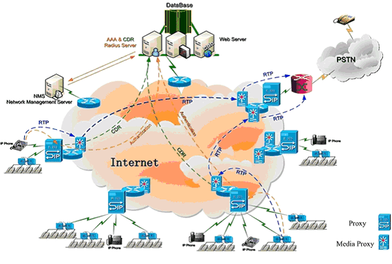 無(wú)論大型企業(yè)用戶(通過PBX接入網(wǎng)關(guān)設(shè)備)、小型企業(yè)用戶(使用網(wǎng)關(guān)設(shè)備)還是其它使用單口網(wǎng)關(guān)或IP Phone的用戶,都可以通過各種接入方式接入到ECM3.0網(wǎng)絡(luò)中,并通過PROXY及MEDIA