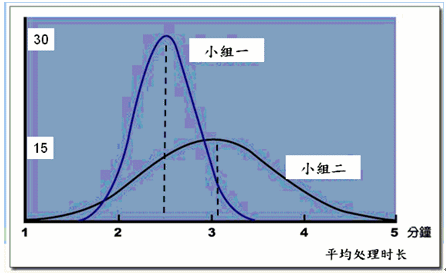 當(dāng)小組一的效率高于小組二,而標(biāo)準(zhǔn)差又比較小的時(shí)候,作為主管的你,就有很大的信心,會(huì)覺(jué)得小組一的表現(xiàn)真正是比小組二要好。