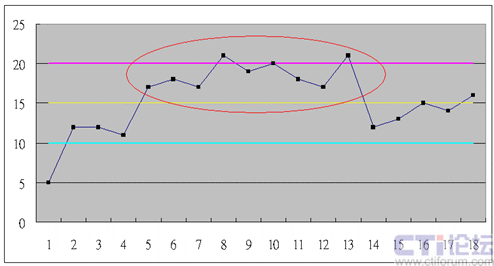 6、9、12法則是一個(gè)非常有威力的口訣,讓第一線的班長都可以從控制圖中,輕易的判斷是否有發(fā)生了特殊原因。