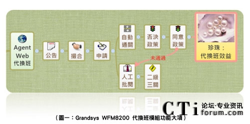 以Grandsys WFM8200為例,其所提供的班務(wù)管理模組,允許呼叫中心匯入Excel班表并提供主管以圖形拖拉調(diào)度班務(wù),而客服人員可以瀏覽器,進(jìn)行代換班之公告、撮合、申請(qǐng),除了自動(dòng)比對(duì)同意否決政策進(jìn)行,自動(dòng)通關(guān)的判斷以外,班組長(zhǎng)或排班師也可進(jìn)行人工批閱,可以說(shuō)是呼叫中心入門(mén)的班務(wù)管理系統(tǒng)。