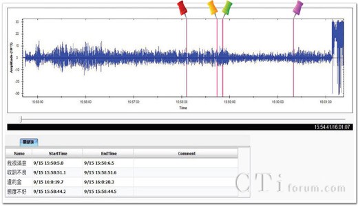 關(guān)鍵詞組字符串設(shè)定,可透過(guò)系統(tǒng)調(diào)配建置學(xué)習(xí)性的語(yǔ)料庫(kù),當(dāng)收集可比對(duì)的關(guān)鍵詞錄音數(shù)量具規(guī)模時(shí),可達(dá)到一定的辨識(shí)度信心水平,同時(shí)透過(guò)Web錄音調(diào)閱畫(huà)面,在撥放符合關(guān)鍵詞音檔時(shí),可提供標(biāo)示、注記、搜尋功能及音文件波形呈現(xiàn)關(guān)鍵詞的落點(diǎn)以及情緒分析變化,有效管理呼叫中心的關(guān)鍵議題,降低客訴率,提升客戶滿意及服務(wù)水平。