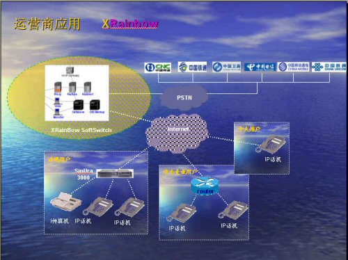 。。如果將Xrainbow系統(tǒng)接入北京的PSTN落地,則各分支機(jī)構(gòu)就可以通過系統(tǒng)平臺(tái)撥打北京的其他電話,收取的只是市話費(fèi)用。