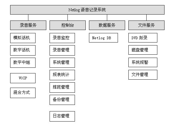 北京億通網(wǎng)訊信息技術(shù)有限公司在原有錄音產(chǎn)品(NETLOG語(yǔ)音記錄系統(tǒng))的基礎(chǔ)上增加了對(duì)VOIP錄音的功能。NETLOG語(yǔ)音記錄系統(tǒng)能夠提供對(duì)模擬線路、數(shù)字線路、ISDN線路、數(shù)字話機(jī)、IP話機(jī)的錄音和實(shí)時(shí)監(jiān)聽,提供網(wǎng)絡(luò)控制臺(tái)對(duì)錄音狀態(tài)進(jìn)行監(jiān)控,對(duì)錄音文件提供查詢、播放等功能,對(duì)磁盤空間進(jìn)行管理,對(duì)錄音文件進(jìn)行自動(dòng)備份和手動(dòng)備份。