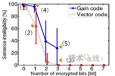 東北大在7bit波形編碼和3bit振幅編碼中采用不同的分割bit數(shù),將其與未分割bit合成后,請(qǐng)6位參試人員聽(tīng)辨解碼后的音頻數(shù)據(jù),評(píng)估了維持保密性所需的最小bit數(shù)(圖2)。