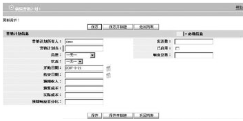 營銷計劃管理功能可以讓用戶跟蹤每個營銷計劃已生成的業(yè)務(wù)機會量。當創(chuàng)建業(yè)務(wù)機會時,用戶可以在營銷計劃來源字段中填入相關(guān)信息,以表明該業(yè)務(wù)機會是由營銷計劃生成的,從而檢驗、評定每個營銷計劃的執(zhí)行效率。