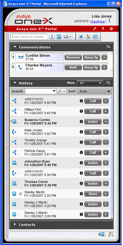 統(tǒng)一通信市場正在步入新的發(fā)展階段,新的產(chǎn)品與方案逐漸面世。在不久前舉行的全球企業(yè)通信盛會美國VoiceCon上, Avaya推出了全新的one-X Portal, 進一步把統(tǒng)一通信從理念帶向?qū)嶋H應用。 Avaya one-X Portal能夠讓員工通過基于網(wǎng)絡的界面,簡便安全地使用各種通信功能,包括語音通信、消息管理、移動辦公和會議等等。通過簡便、創(chuàng)新的方式,這個方案讓使用者從桌面電腦獲得統(tǒng)一通信的全部功能,從而提高了效率、管理能力和業(yè)務連續(xù)性。