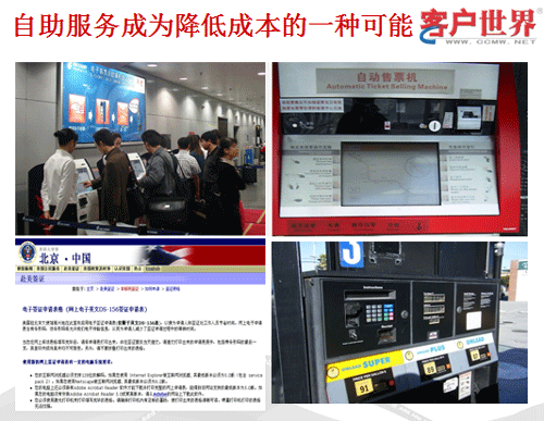 我想自助服務(wù)成為降低成本的一種手段已經(jīng)不是什么新話題。我這次去美國,感觸特別深刻,今天的華盛頓機場,當你去UA柜臺check in的時候已經(jīng)幾乎沒有人了,基本靠自助服務(wù),你自己check in,自己把行李條貼上。我們?nèi)ッ绹笫桂^辦簽證,他們只收電子表格的申請。什么是電子表格,就是你得在美國大使館網(wǎng)站上把你的信息輸進去,等于你幫助美國大使館節(jié)約了輸入費用。我想今天無論在上海還是北京,在中國很多行業(yè)已經(jīng)開始使用自助手段,我們無法逃避這樣一個現(xiàn)實。