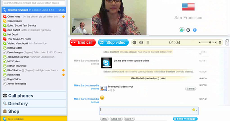 顯著的一個(gè)大改變是,軟件界面變成了全屏,而視頻窗口又占據(jù)了絕大部分版面。在視頻中還有“畫中畫”的功能,小的畫面可以任意移動(dòng)?梢哉f(shuō)skype從一部網(wǎng)絡(luò)電話,變成了一部網(wǎng)絡(luò)可視電話;蛘撸孟窀杏X是在視頻聊天室中一樣。