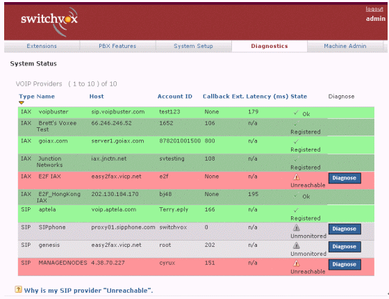 圖2中綠色表示正常,紅色表示出現(xiàn)問題,白色表示從沒有接通過。如果你按診斷(Diagnose),系統(tǒng)便會通過自動測試,告訴你問題出自那一段落。如果需要對每一個的詳細(xì)解析,可以按底部Why這個標(biāo)題,找尋答案。類似的終端、話機(jī)等配置、硬件診斷等,也有非常明撩的界面與解決問題的辦法。