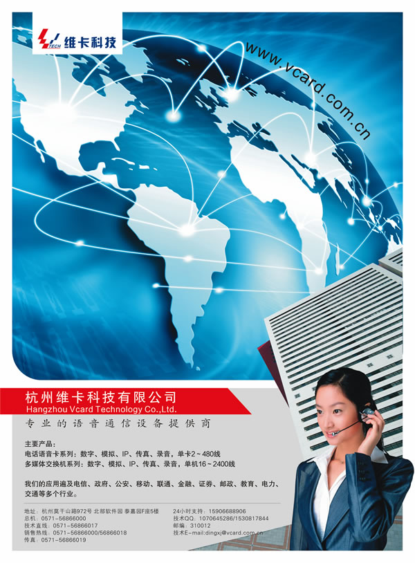 維卡科技有限公司(簡(jiǎn)稱“維卡科技”)成立于2004年,是一家以下一代網(wǎng)絡(luò)通信為發(fā)展方向的高科技企業(yè),公司成立于上海,在杭州設(shè)立研發(fā)和生產(chǎn)基地,公司主要從事通信和語音產(chǎn)品的研究、開發(fā)、生產(chǎn)及銷售,是國內(nèi)通信語音產(chǎn)品―――電話語音卡的核心供應(yīng)商之一。公司匯集一批多年從事CTI技術(shù)研究的高級(jí)專業(yè)人才,堅(jiān)持自主創(chuàng)新,自主研發(fā),不斷推出適合人性化的一流產(chǎn)品,經(jīng)過短短幾年的發(fā)展,公司的語音卡產(chǎn)品已經(jīng)躋身全國三強(qiáng),為中國的CTI行業(yè)貢獻(xiàn)了一份力量。