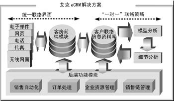 通過(guò)建置美國(guó)艾克的eCRM平臺(tái),易網(wǎng)通公司建立了統(tǒng)一的客戶(hù)服務(wù)中心,該中心具有咨詢(xún)、服務(wù)功能,還包括銷(xiāo)售功能和企業(yè)市場(chǎng)計(jì)劃功能。