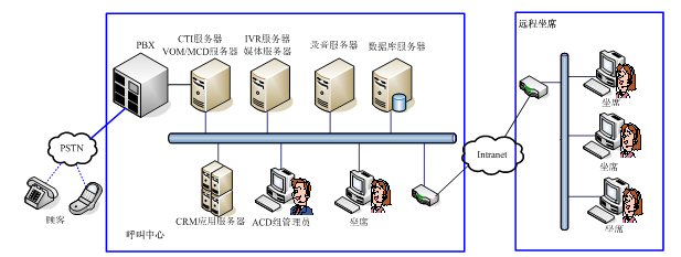 VOM MCD系統(tǒng)是一個獨立于PBX之外的智能路由系統(tǒng),從設(shè)計之初,就采用開放的技術(shù)標準和協(xié)議,支持各種主流的PBX,支持VOIP功能,實現(xiàn)遠程坐席管理以及分布式呼叫中心的集中管理。