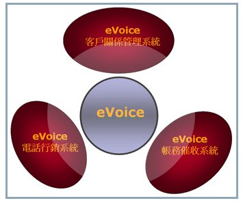 eVoice電話營(yíng)銷(xiāo)應(yīng)用系統(tǒng)、帳務(wù)催收應(yīng)用系統(tǒng)、客戶關(guān)系管理應(yīng)用系統(tǒng)
