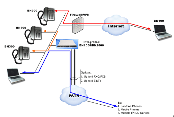 - BN2000 IP-PBX具有動態(tài)路由選擇功能,支持用戶訂購多種IP國際長途電話(IP IDD)服務。