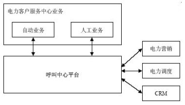 電力客戶服務(wù)中心整體結(jié)構(gòu)根據(jù)呼叫中心方案設(shè)計(jì),采用呼叫中心平臺(tái)系統(tǒng)為客服平臺(tái),在平臺(tái)上開發(fā)電力自動(dòng)業(yè)務(wù)和人工業(yè)務(wù)系統(tǒng);并且利用呼叫中心系統(tǒng)平臺(tái)的互連互通能力跟其他電力相關(guān)軟件系統(tǒng)對(duì)接,如后臺(tái)電力營(yíng)銷子系統(tǒng),電力管理系統(tǒng),電力調(diào)度,電力網(wǎng)管,客戶關(guān)系管理子系統(tǒng)等等。