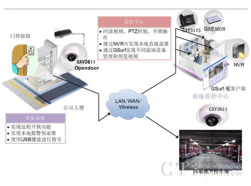 為了方便商場(chǎng)店主以及購(gòu)物顧客,Millennium Mall商場(chǎng)內(nèi)設(shè)計(jì)了一個(gè)6層的地下停車場(chǎng),商場(chǎng)管理員通過(guò)網(wǎng)絡(luò)攝像機(jī)監(jiān)控和監(jiān)督停車費(fèi)收納員,通常到商場(chǎng)購(gòu)物的顧客會(huì)提前預(yù)存一定的停車費(fèi)用。潮流網(wǎng)絡(luò)GXV3611網(wǎng)絡(luò)半球形網(wǎng)絡(luò)攝像機(jī),GXV3601高清網(wǎng)絡(luò)攝像機(jī)分布安裝在商場(chǎng)以及地下停車場(chǎng)關(guān)鍵角落,每周全天7x24小時(shí)的監(jiān)控,隨時(shí)、隨地、多種終端的實(shí)時(shí)視頻觀看。潮流網(wǎng)絡(luò)GXV3140、GXV3175多媒體視頻電話則安裝在商場(chǎng)室內(nèi),結(jié)合QuadroM32x門禁系統(tǒng)作為IP方案的擴(kuò)展,并只允許商場(chǎng)停車費(fèi)出納員通過(guò)視頻話機(jī)控制網(wǎng)絡(luò)攝像機(jī)。當(dāng)門禁系統(tǒng)被觸發(fā)時(shí),視頻電話和攝像機(jī)視頻流將實(shí)時(shí)抓拍畫面和錄像,并立即將視頻流和抓拍畫面直接傳輸反饋到保衛(wèi)安全科辦公室或指定的相關(guān)安全部門,幫助第一時(shí)間解決威脅,避免商場(chǎng)財(cái)產(chǎn)和人員受到破壞或損傷。當(dāng)然,商場(chǎng)職工也可通過(guò)潮流網(wǎng)絡(luò)視頻電話或者手中的智能手機(jī)撥打呼叫網(wǎng)絡(luò)攝像機(jī),觀看監(jiān)控畫面和雙向語(yǔ)音對(duì)話。例如,保衛(wèi)科保安人員或辦公室管理人員定時(shí)使用GXV3140視頻電話撥打GXV系列的網(wǎng)絡(luò)攝像機(jī)監(jiān)控追蹤現(xiàn)場(chǎng),Grandstream的Gsurf免費(fèi)視頻管理軟件協(xié)助管理,確保停車場(chǎng)收納員的安全。商場(chǎng)通過(guò)使用VoIP通信與潮流網(wǎng)絡(luò)的終端安全有效地管理維護(hù)商場(chǎng)的有序運(yùn)行,管理商場(chǎng)。