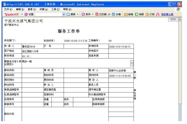 2)業(yè)務查詢:用戶可通過受理人員或自動語音應答系統(tǒng)根據用戶要求從數據庫查詢資料,然后通過語音方式播報或送到用戶指定傳真機或其他終端設備上。應考慮以后用web方式查詢氣費等數據,以不動及主體設備方式平滑升級。