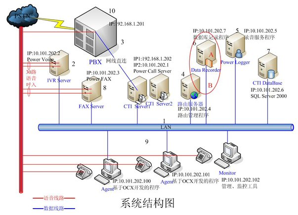 - IVR Server和FAX Server采用高品質(zhì)的工控機(jī),配置和軟件環(huán)境基本一樣。每臺機(jī)器均有30路語音接入,分別裝有一套Power