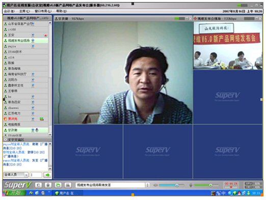 此次產(chǎn)品發(fā)布會(huì),我們采用網(wǎng)絡(luò)視頻會(huì)議的形式,多數(shù)與會(huì)人員登陸視維新產(chǎn)品網(wǎng)絡(luò)發(fā)布會(huì)義室。眾多朋友在初次體驗(yàn)視維v6.0新產(chǎn)品之時(shí),感受著視維視頻會(huì)議v6.0新產(chǎn)品給我們帶來的驚喜。清晰流暢的視頻,完美的音質(zhì),超強(qiáng)的服務(wù)架構(gòu),基于IP網(wǎng)絡(luò)的綜合通信業(yè)務(wù),使用戶聯(lián)系起來更加方便、快捷。在會(huì)議現(xiàn)場,山大聯(lián)潤公司總經(jīng)理邢岳林對參加此次視維v6.0網(wǎng)絡(luò)發(fā)布會(huì)的朋友表示熱烈歡迎,并對視維視頻會(huì)議的產(chǎn)生、發(fā)展及v6.0產(chǎn)生的背景做了詳細(xì)的介紹,他說:“視維一直堅(jiān)持并將繼續(xù)堅(jiān)持的以客戶為中心的產(chǎn)品理念和服務(wù)理念將成為我們與客戶、與伙伴共贏未來的原動(dòng)力。在視維視頻會(huì)議5.xx優(yōu)秀產(chǎn)品體系的基礎(chǔ)上,我們接受客戶朋友提出的很好的建議,做了大量改進(jìn),因此有v5.0、5.1、5.3、5.35…體系架構(gòu)。v6.0的核心部件比5.35有了很大的提升,v6.0的設(shè)計(jì)目標(biāo)是更好的品質(zhì)、更強(qiáng)的功能、更加易用、更加可靠、更加開放…,結(jié)合江蘇電力、金光集團(tuán)、中石油、鐵路的實(shí)際應(yīng)用給與詳細(xì)的介紹。視維將一如既往地堅(jiān)持“傾力創(chuàng)新、專業(yè)品質(zhì)、共贏未來”的經(jīng)營理念。