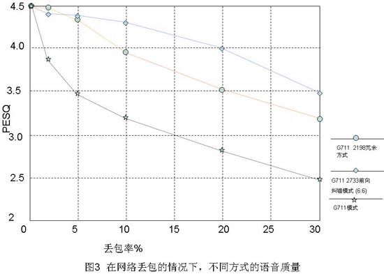 理想的網(wǎng)絡(luò)情況是所有發(fā)送的語音報(bào)文都能夠被接收端正常接收。但是IP報(bào)文在網(wǎng)絡(luò)上傳遞時(shí),網(wǎng)絡(luò)的個(gè)別處理節(jié)點(diǎn)可能會(huì)出現(xiàn)處理能力不夠或者帶寬受限制的情況,部分報(bào)文可能會(huì)被丟掉。雖然IP網(wǎng)絡(luò)上有一些機(jī)制可以在報(bào)文丟失的時(shí)候重傳丟失報(bào)文,但是對(duì)實(shí)時(shí)性要求很高的話音數(shù)據(jù)并不能使用這些機(jī)制。