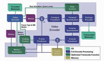 過去幾年來,業(yè)界針對轉(zhuǎn)碼工作提出了幾種不同的方法,可提高處理與存儲(chǔ)器資源的使用效率。大多數(shù)這種方案都建立在這樣一種認(rèn)識基礎(chǔ)之上,即我們能通過更先進(jìn)的技術(shù)對初始編碼過程中創(chuàng)建的量子化和頻率域信息進(jìn)行修改,更好地加以利用,摒棄其中無用的東西,而不必簡單地對原始視頻內(nèi)容進(jìn)行重構(gòu)。