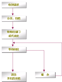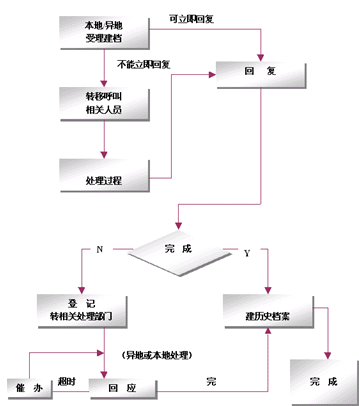 整個(gè)網(wǎng)絡(luò)采用只在集中受理中心設(shè)立一個(gè)集中監(jiān)控系統(tǒng),負(fù)責(zé)監(jiān)控全網(wǎng)的客戶(hù)業(yè)務(wù)、服務(wù)、技術(shù)支持和投訴等等業(yè)務(wù),該系統(tǒng)基于事件管理的思想,提供包括創(chuàng)建、解決、分配、反饋、跟蹤、回訪(fǎng)等節(jié)點(diǎn)在內(nèi)的閉環(huán)處理模式。例如系統(tǒng)可以根據(jù)客戶(hù)反映問(wèn)題的時(shí)間以及緊急程度,按照系統(tǒng)約定的處理時(shí)限對(duì)處理過(guò)程實(shí)時(shí)跟蹤和記錄,當(dāng)處理超時(shí)時(shí)回自動(dòng)給出報(bào)警信息,提示相關(guān)的操作人員及主管人員。同時(shí)根據(jù)約定還可以將受理的問(wèn)題按照約定的方式自動(dòng)發(fā)送到相關(guān)的處理部門(mén),由處理部門(mén)進(jìn)行處理。