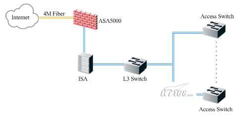 客房局域網(wǎng)通過一條6M的光纖接入CNC網(wǎng)絡(luò),網(wǎng)關(guān)設(shè)備承擔(dān)了DHCP、NAT和流量限制等功能,同時在思科6504上安裝有安全板卡,對內(nèi)部網(wǎng)絡(luò)安全進行加強和防御。由于每個客房有2~3個信息點,客房局域網(wǎng)總共有1300個左右的信息點。