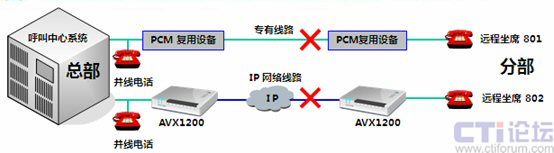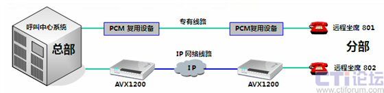 傲威通信采用AVX1200作為中心端和遠(yuǎn)程坐席端的復(fù)接設(shè)備,采用Hotline形式,只要遠(yuǎn)程坐席員摘機(jī),中心端的呼叫中心交換機(jī)立刻接到摘機(jī)指令。當(dāng)有呼叫到來(lái),遠(yuǎn)程坐席可像本地坐席一樣接聽(tīng)電話,無(wú)任何差異。