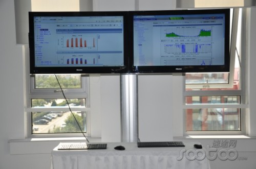 從這兩個(gè)大屏幕上,T-care服務(wù)中心的技術(shù)人員可以隨時(shí)監(jiān)控網(wǎng)絡(luò)和系統(tǒng)狀態(tài)動(dòng)態(tài),為呼叫中心穩(wěn)定運(yùn)行保駕護(hù)航。