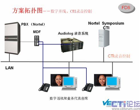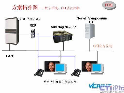 Audiolog錄音系統(tǒng)能和Nortel交換機、Symposium CTI進行整合,并從中拿到錄音檢索參數(shù),便于用戶檢索。