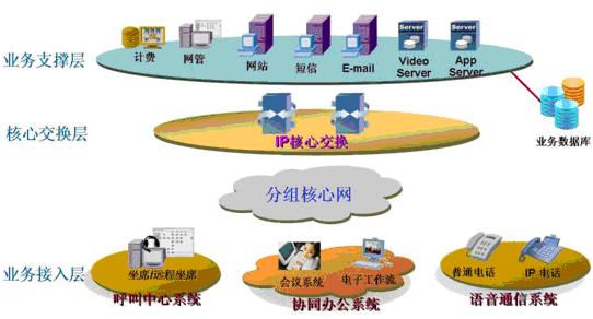 業(yè)務(wù)支撐層:計(jì)費(fèi)、網(wǎng)管、多媒體視頻、應(yīng)用服務(wù)器等各種功能服務(wù)器。可與用戶的業(yè)務(wù)數(shù)據(jù)庫(kù)對(duì)接,為整個(gè)業(yè)務(wù)提供有力的支撐平臺(tái)。確保有效快速的處理呼叫流程、提高工作效率,評(píng)估呼叫中心的表現(xiàn)。