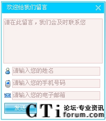 17.網(wǎng)站留言:網(wǎng)站留言是用于在CSR2000用戶(hù)的網(wǎng)站頁(yè)面上添加一個(gè)窗口,通過(guò)這個(gè)窗口,網(wǎng)站的訪問(wèn)者可以輸入自己的聯(lián)系方式與需求情況,然后由CSR2000系統(tǒng)將信息傳遞給座席,如下圖: