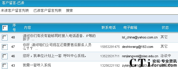 CSR2000中網(wǎng)站留言處理頁(yè)面圖示