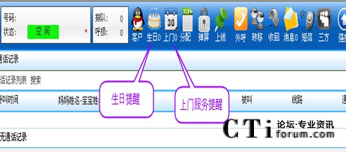 2、號碼歷史記錄自動(dòng)查詢,寶貝媽媽聯(lián)絡(luò)情況一點(diǎn)即知,并配合特別設(shè)計(jì)的母嬰客戶信息管理系統(tǒng),實(shí)現(xiàn)來電、去電自動(dòng)彈屏,業(yè)務(wù)種類、聯(lián)系意向、用戶類型、消費(fèi)能力同時(shí)呈現(xiàn);