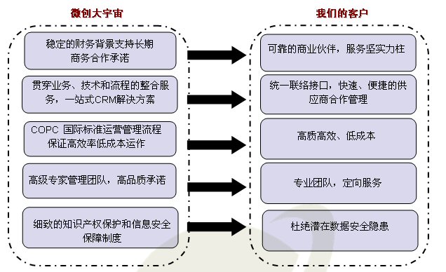 Wicresoft 微創(chuàng)軟件是上海聯(lián)和投資有限公司控股的國(guó)家重點(diǎn)軟件企業(yè),是微軟公司在華最重要的投資項(xiàng)目之一。自2002年5月成立以來(lái),本著“迅捷、誠(chéng)信、盡責(zé),打造值得信賴的國(guó)際化IT外包與服務(wù)提供商”的愿景,微創(chuàng)一直專注于信息技術(shù)外包(ITO)和業(yè)務(wù)流程外包(BPO)領(lǐng)域,不斷積累豐富的先進(jìn)技術(shù)、細(xì)致高效的流程管理、靈活調(diào)配的規(guī)模化專業(yè)人員,旨在為客戶提供度身定制的高績(jī)效專業(yè)服務(wù),打造完美客戶體驗(yàn)。