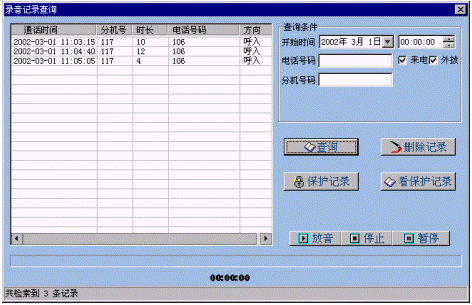 保存所有坐席的錄音文件,顯示當(dāng)前所有坐席的狀態(tài)(工號(hào)、分機(jī)號(hào)、坐席狀態(tài)等)以及所有操作員的狀態(tài),并在磁盤空間將滿時(shí)實(shí)時(shí)刪除最陳舊的錄音文件并更新數(shù)據(jù)庫(kù)保證最新的錄音文件能及時(shí)上傳到服務(wù)器以及整個(gè)錄音系統(tǒng)持續(xù)、長(zhǎng)期、穩(wěn)定的運(yùn)行。