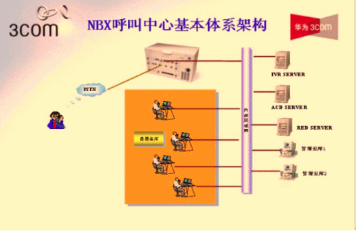 - 華為-3Com NBX采用數(shù)據(jù)包交換技術(shù),實(shí)現(xiàn)了語(yǔ)音與數(shù)據(jù)的融合。NBX呼叫中心系統(tǒng)平臺(tái)可以為客戶服務(wù)人員提供軟件和硬件的IP電話終端,用戶只需將坐席PC或IP話機(jī)接到桌面網(wǎng)口即可,無須重新部署語(yǔ)音線路,同時(shí)利用語(yǔ)音與數(shù)據(jù)融合的技術(shù)使得客服中心實(shí)現(xiàn)了統(tǒng)一的通信網(wǎng)絡(luò),減少的2套布線的繁瑣,大大降低了系統(tǒng)的維護(hù)及管理的工作量。