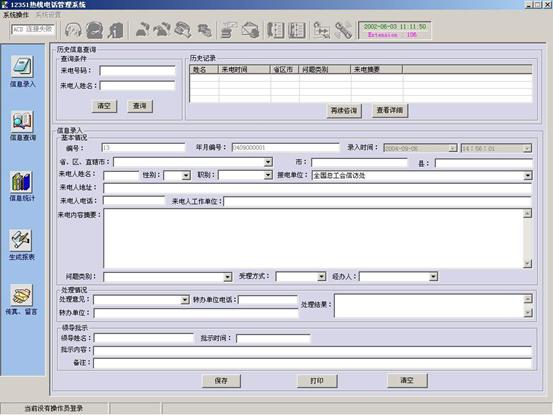 - 完善業(yè)務(wù)統(tǒng)計工作:針對健康熱線采集的信息,我們根據(jù)實際需要設(shè)計了統(tǒng)一格式的各項報表,同時將報表全部做電子化處理,方便業(yè)務(wù)數(shù)據(jù)的統(tǒng)計及管理,為各級領(lǐng)導決策提供可靠依據(jù)。