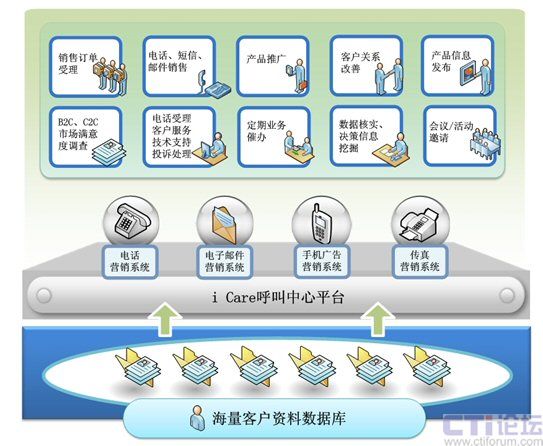 依托先進(jìn)CTI技術(shù),基于現(xiàn)代服務(wù)營(yíng)銷(xiāo)理念,系統(tǒng)實(shí)現(xiàn)銷(xiāo)售線(xiàn)索挖掘、電話(huà)銷(xiāo)售跟蹤、銷(xiāo)售機(jī)會(huì)孵化、市場(chǎng)機(jī)會(huì)勘察、B2B/B2C市場(chǎng)調(diào)查、會(huì)議邀請(qǐng)、客戶(hù)關(guān)系改善、定期業(yè)務(wù)催辦等多種電話(huà)營(yíng)銷(xiāo)服務(wù)。