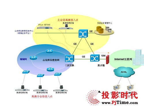根據(jù)用戶的具體需求及現(xiàn)場實際情況,星瀾公司為陽谷教育局提供了一臺MCU、12臺高清終端、50個軟件終端。MCU安裝在教育局總部,高清終端安裝在各高中、初中等重要教委部門,同時配置兩個高清攝像機將教師或教室實時圖像與教師板書同時清晰遠程呈現(xiàn)給大家,同時可外接一路電腦圖像,不同科目的教師可將教學課件PPT,不同的教學軟件如幾何畫板、AUTHWARE等分別安裝到教室內(nèi)一臺獨立的PC機上,通過網(wǎng)絡(luò)傳送到遠端,從而完成多媒體互動教學。各小學配置終端軟件及攝像機,主要用于召開全市教育網(wǎng)絡(luò)視頻會議。各小學之間基本不需要遠程公開授課,僅參加會議。這樣配置可節(jié)省成本,經(jīng)濟實用。通過軟硬結(jié)合的方式,利用陽谷教育局教育城域網(wǎng)為用戶實現(xiàn)了全市教育系統(tǒng)視頻會議、教師遠程教育培訓、教師公開課示范教學等功能。