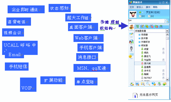 UcSTAR:Unified Communication Star,是擎旗技術(shù)研發(fā)的統(tǒng)一通訊平臺,它為企業(yè)提供多種通訊手段(企業(yè)即時通信、視頻、語音、郵件、短信、電話、MSN/QQ互通等),并可融合企業(yè)的各種應(yīng)用系統(tǒng)(OA、ERP、CRM、網(wǎng)站、電子商務(wù)系統(tǒng)等);將企業(yè)對外溝通、銷售和服務(wù)、對內(nèi)溝通和協(xié)作無縫整合;輕松實(shí)現(xiàn)無地域/時間限制的,可管理、可控制、可擴(kuò)展的,集內(nèi)外部溝通、服務(wù)和銷售一體化的統(tǒng)一工作平臺。此外,它也可被分離應(yīng)用為企業(yè)IM及實(shí)時協(xié)作系統(tǒng)、多媒體呼叫中心系統(tǒng)、專業(yè)級的IP視頻會議系統(tǒng)等。