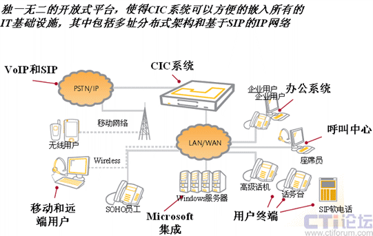 可以方便的與不同的第三方網(wǎng)絡(luò)設(shè)備,用戶終端等集成,預置的Microsoft插件使得CIC可以和Microsoft