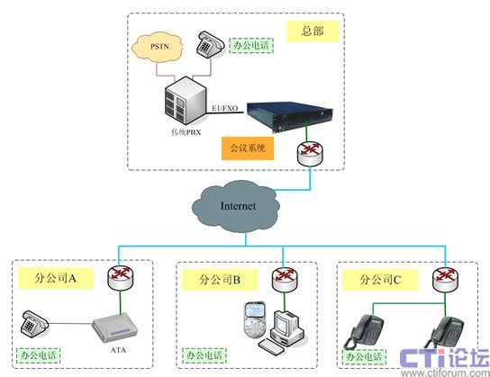 圖注:捷思銳電話會(huì)議系統(tǒng)示意圖