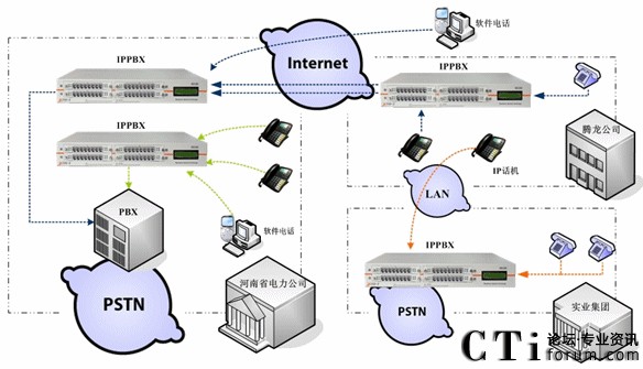 · “騰龍公司”需要組建內(nèi)部電話網(wǎng),并且可以與“河南電力”進行VoIP通話?梢赃M行電話會議;