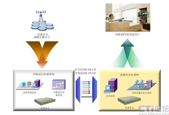 - 延遲時間自由設置。根據(jù)國家之間時差的不同,傳輸延遲時間可以設置從3分鐘到24小時的任意時長,真正實現(xiàn)時移電視。