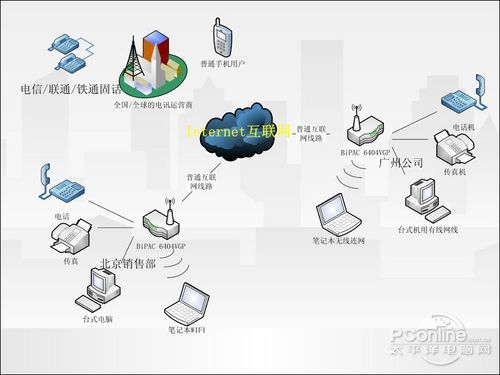 BiPAC 6404VGP其實(shí)就是一個(gè)VoIP語(yǔ)音網(wǎng)關(guān),VoIP就是一種把語(yǔ)音信號(hào)轉(zhuǎn)換成在網(wǎng)絡(luò)上傳輸?shù)臄?shù)字信號(hào)的技術(shù),它的應(yīng)用已經(jīng)非常成熟,我們經(jīng)常使用的QQ語(yǔ)音聊天功能也就是VoIP的一種表現(xiàn)形式。在所有大型跨國(guó)企業(yè)里我們幾乎都能看到VoIP技術(shù)的身影,這是因?yàn)殡娦胚\(yùn)營(yíng)商的長(zhǎng)途電話費(fèi)一般都不便宜,而我們企業(yè)的網(wǎng)絡(luò)使用費(fèi)一般又是包月的,通過(guò)無(wú)限包月的網(wǎng)絡(luò)打免費(fèi)的國(guó)際國(guó)內(nèi)長(zhǎng)途電話不就是占電信的便宜嘛?