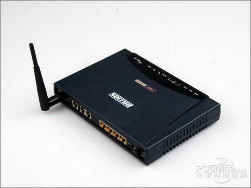 BiPAC 6404VGP外觀看上去與一臺(tái)普通的無(wú)線路由器沒(méi)多大區(qū)別,由于是面向企業(yè)級(jí)用戶,所以外型設(shè)計(jì)比較沉穩(wěn)。整機(jī)深藍(lán)色,在無(wú)線路由器的正上方鮮明的標(biāo)注出它同時(shí)還是一臺(tái)VoIP語(yǔ)音網(wǎng)關(guān)。